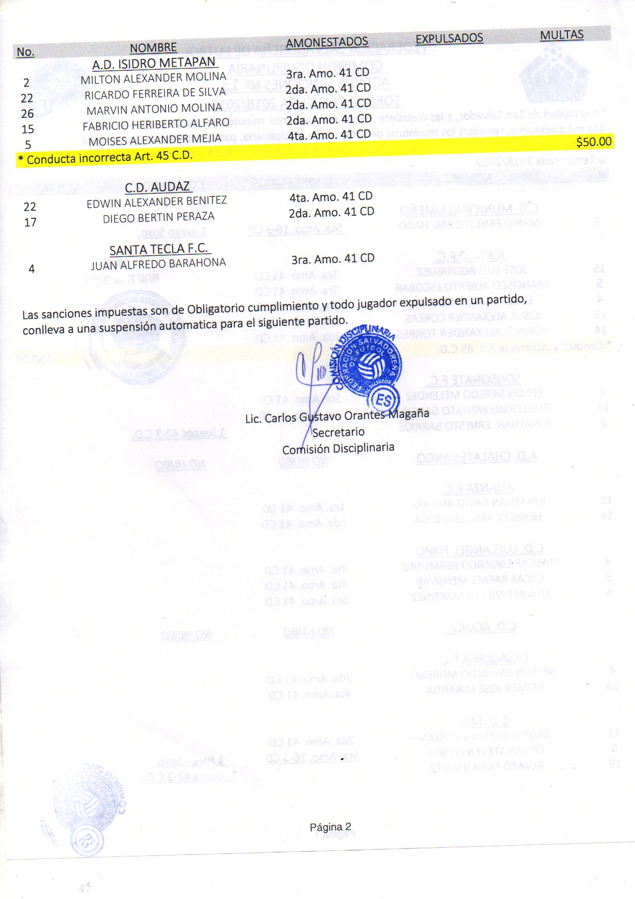 En dicha fecha se brinda mención especial a AD Chalatenango y CD Águila, ya que ninguno de sus jugadores fue expulsado o amonestado, en sus respectivos encuentros.